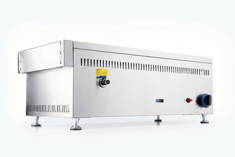 Constructed in stainless steel with a double-lined well for heat retention, this unit features piezo ignition, a flame failure safety device, and adjustable temperature control. A water level mark and front drain tap simplify operation and cleaning.