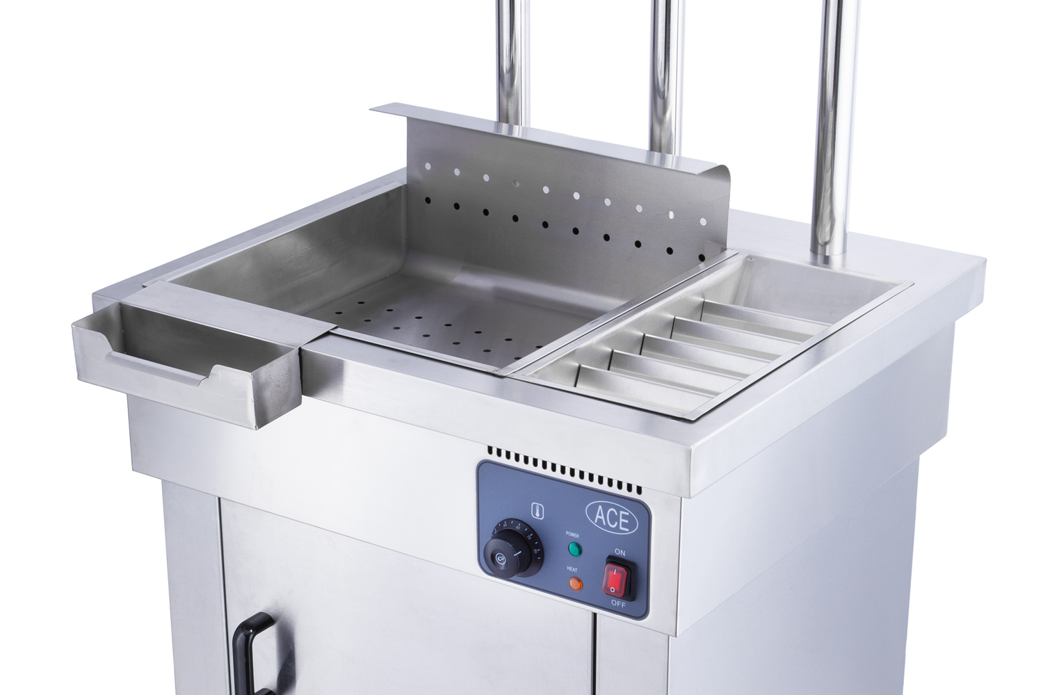 ACE EN68 Floorstanding Chip Scuttle is part of ACE’s range of quality stainless steel chip scuttles. This machine is ideal for busy takeaways, pubs and restaurants. It is robust and easy to maintain. It will speed up your serving time and increase sales output. The adjustable heat thermostat allows precise temperature control, ensuring food is reliably stored at the correct temperature for service.