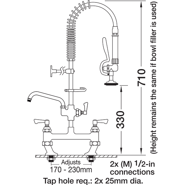 Aquajet AJPR30-SH-BF2-S Deck Mounted Pre-Rinse Spray Tap with 300mm Bowl Filler (Short)