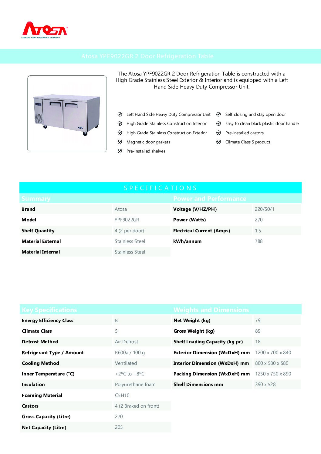 - Gross/Net Weight: 89kg / 79kg