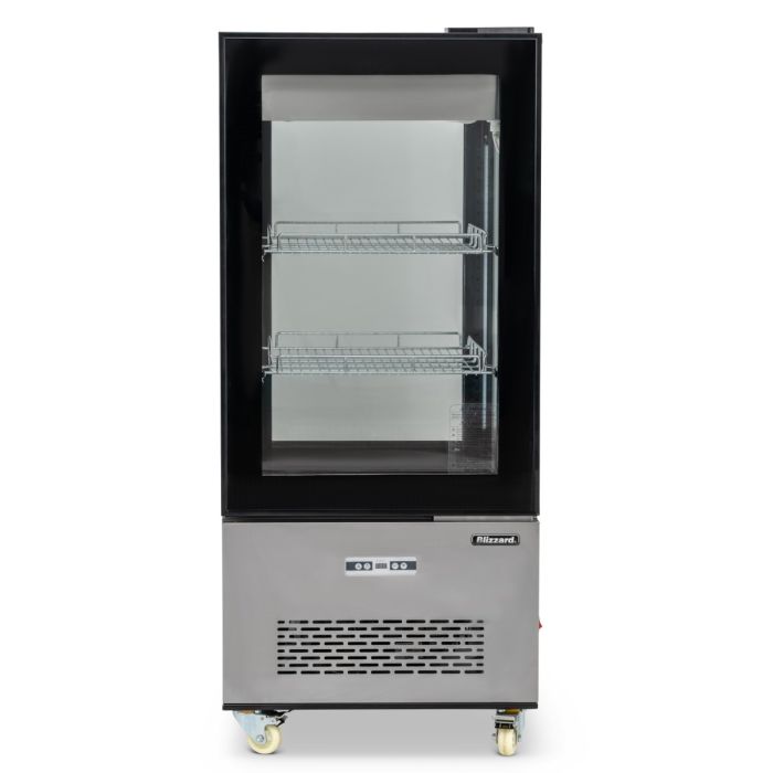 A 360 degree view, a clean modern looking unit, easily accessible and plenty of refrigerated display space. 3 year warranty.
