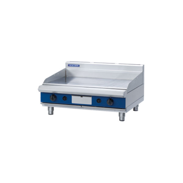 Blue Seal GP516-B 900mm Gas Griddle Bench Model. A heavy-duty gas griddle designed to deliver top performance in any commercial food service application. All heavy-duty griddles have a standard 20mm plate for maximum heat retention and distribution. A new mirror chrome surface option, also available as smooth or ribbed, minimises heat loss by trapping more heat on the cooking surface. Available in Natural gas and LP gas, please specify when ordering.