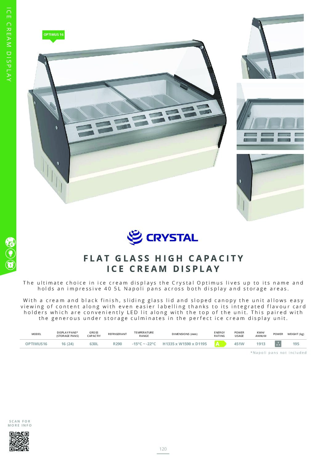 CRYSTAL Optimus 16 Ice Cream Display 630L is part of the range from Crystal, renowned for being a manufacturer of high quality commercial refrigeration equipment. A market leader offering finest designs, reliability and quality products.