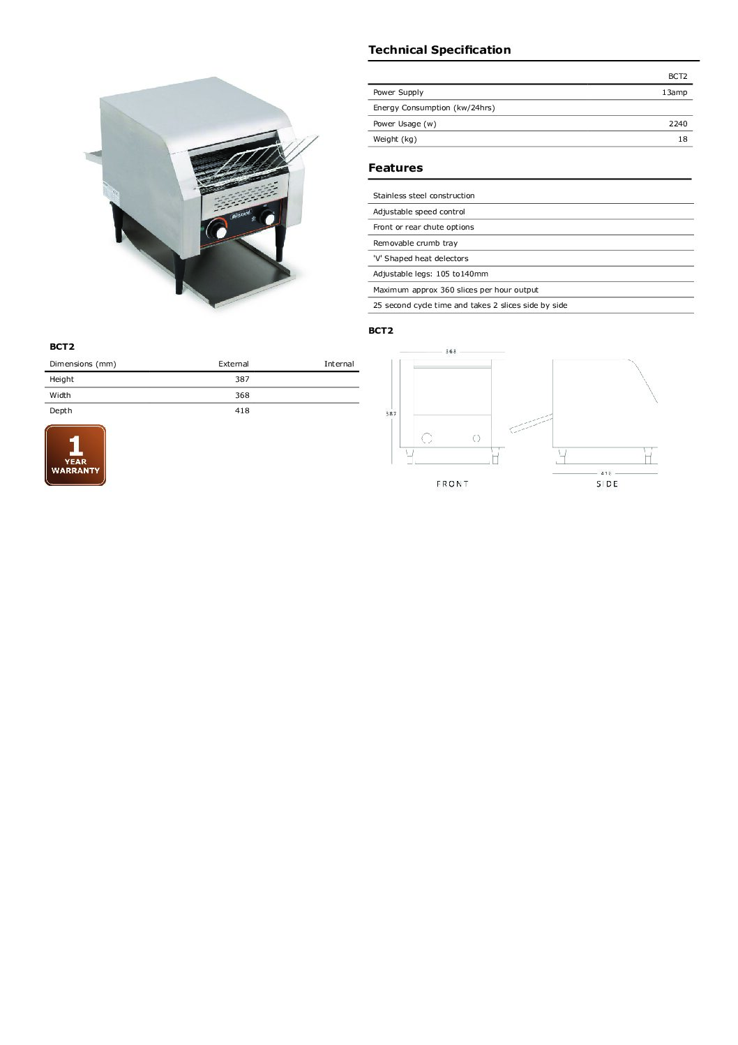 The GRADED Blizzard BCT2 Conveyor Toaster is a powerful and efficient commercial toaster designed for high-demand kitchens, breakfast buffets, and grab-and-go counters. With variable speed and heat controls, it delivers consistent results without slowing your service. Featuring a quick 25-second cycle, space for 2 slices side by side, ‘V’ shaped heat deflectors and the easy-to-use speed and temperature controls ensure this unit is designed to handle demand with ease.