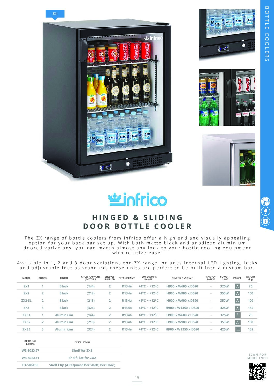 ZX1 – 144 bottle capacity, ZX2 – 218 bottle capacity, ZX2-SL – 218 bottle capacity (sliding doors), ZX3 – 324 bottle capacity.