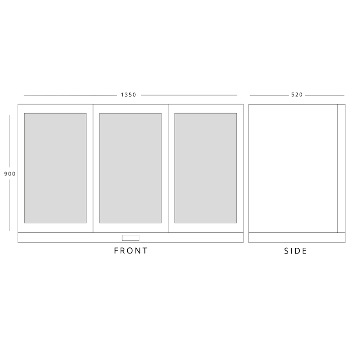 Dimensions Depth 520 mm , Width 1350 mm , Height 900 mm.