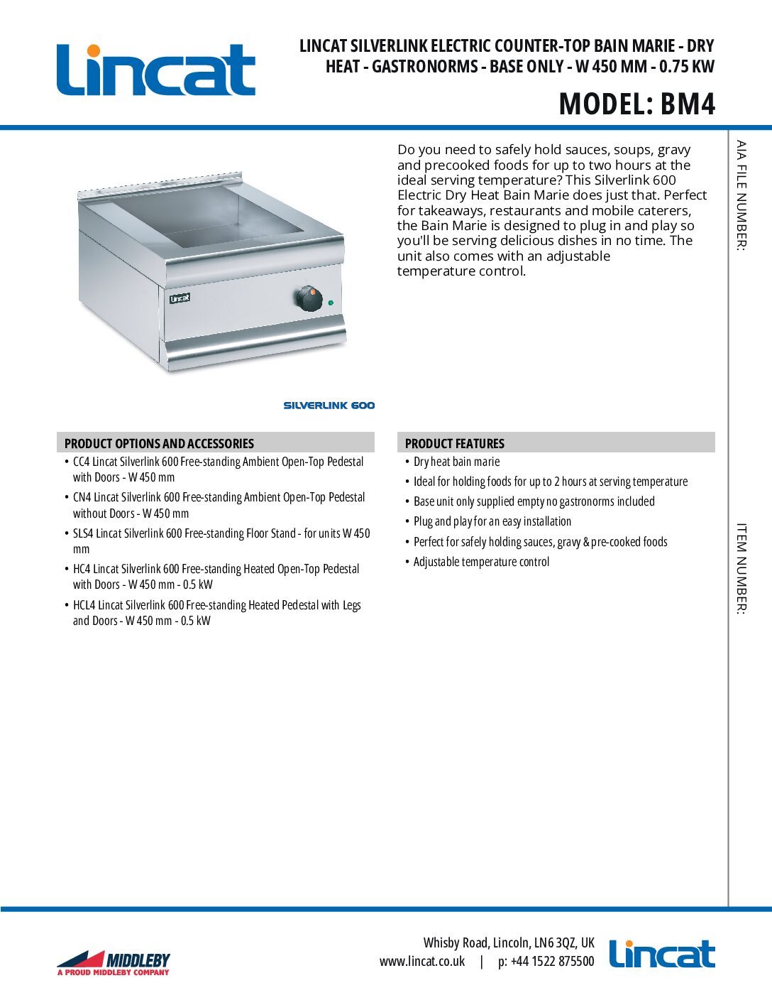 Lincat BM4 Dry Heat Electric Bains Marie is part of the Lincat Silverlink range which is modular 600mm deep prime cooking equipment. (light-medium duty)