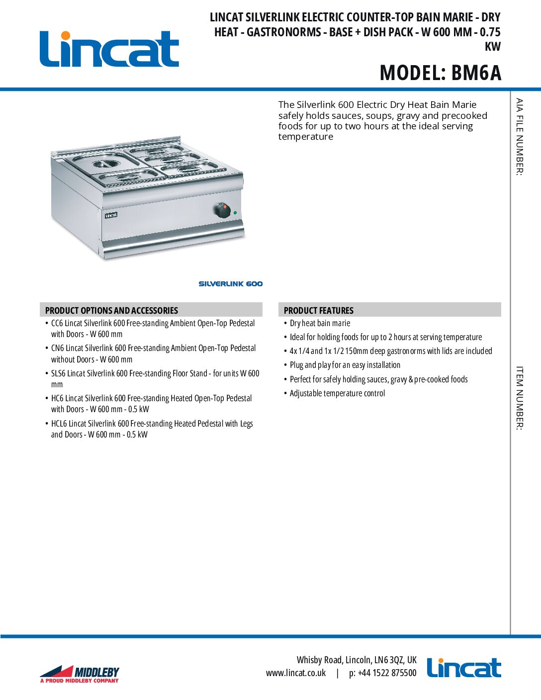 Lincat BM6A Dry Heat Electric Bains Marie is part of the Lincat Silverlink range which is modular 600mm deep prime cooking equipment. (light-medium duty)