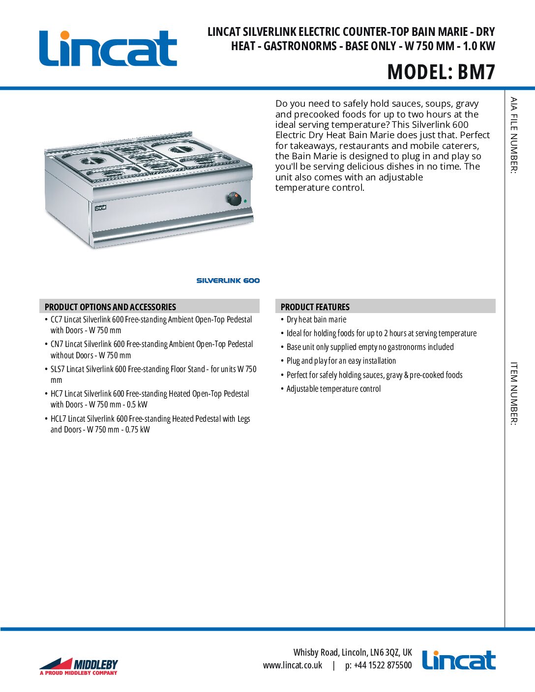 Lincat BM7 Dry Heat Electric Bains Marie is part of the Lincat Silverlink range which is modular 600mm deep prime cooking equipment. (light-medium duty) This range is extensive and includes gas and electric cooking equipment for both counter-top and free-standing use. All units are 600mm deep to make optimum use of available kitchen space. Width sizes extend from a compact 300mm up to 900mm, depending on the product type.