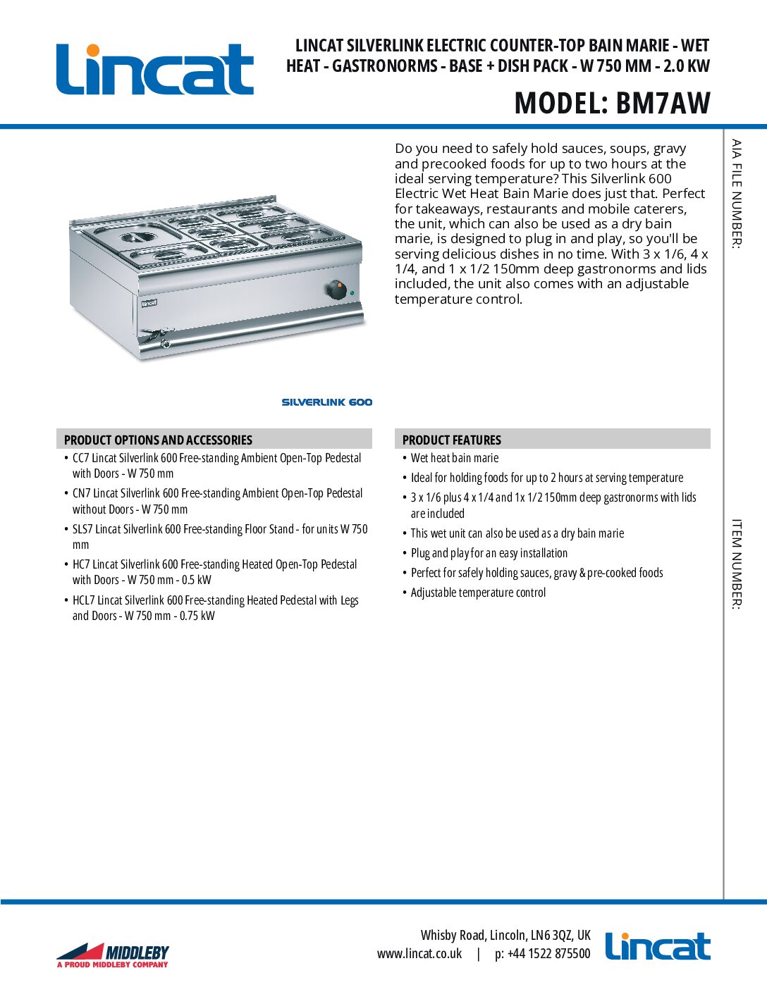 Lincat BM7AW Wet Heat Electric Bains Marie is part of the Lincat Silverlink range, a line of light-medium duty cooking equipment. The Silverlink range offers a wide selection of gas and electric cooking equipment for both countertop and freestanding use. All units are 600mm deep to optimize kitchen space utilization. Width sizes range from a compact 300mm to 900mm, depending on the product type.