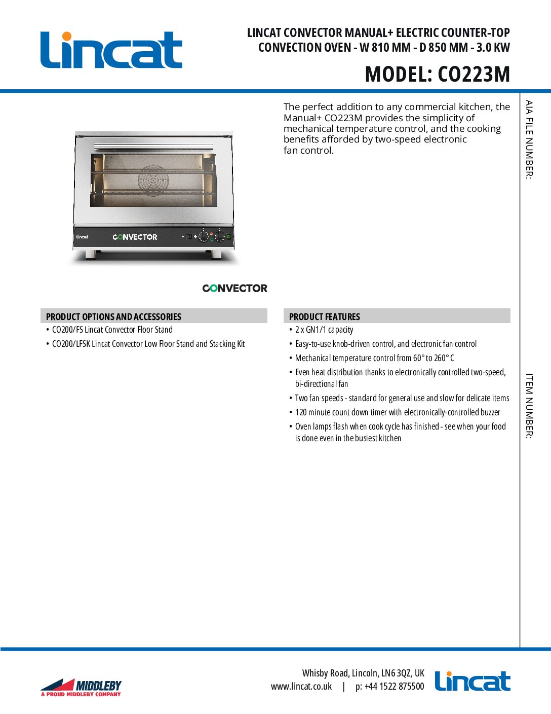 LINCAT Convector CO223M Manual+ Electric Countertop Convection Oven 96L