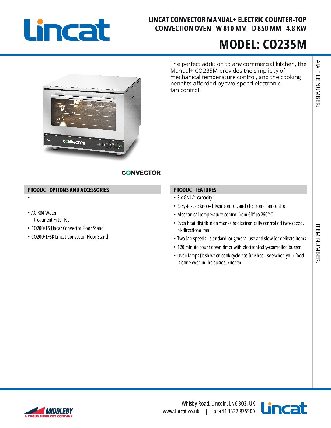 LINCAT Convector CO235M Manual+ Electric Countertop Convection Oven 96L