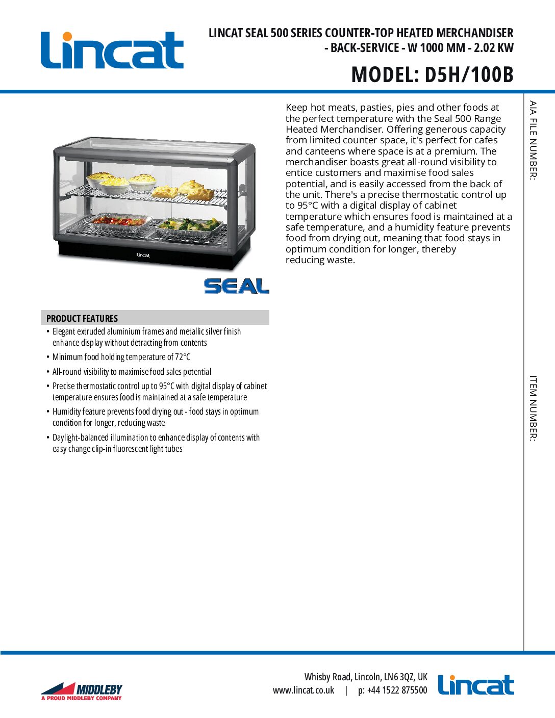 Lincat D5H/100B Heated Merchandiser is part of the Seal range. Seal is a comprehensive range of heated, refrigerated and ambient food display units. From rectangular or curved front Merchandisers, to Food Display Bars, Heated Displays, Pie Cabinets and Upright Heated Merchandisers with built-in oven, there’s a Seal product to suit every need.