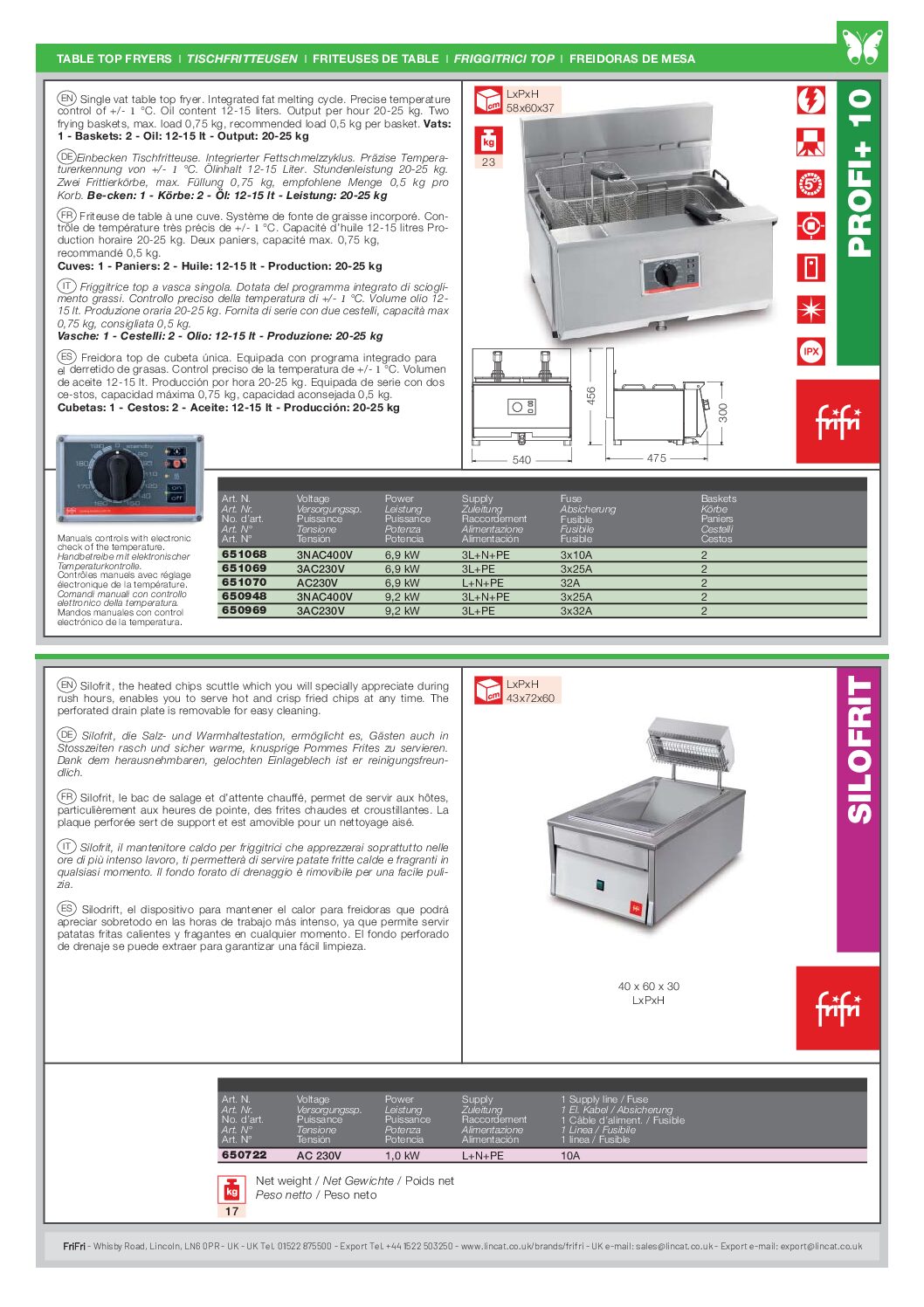 Lincat FriFri Profi+ 10 Single Tank Counter Top Electric Fryer 12-15L is part of the range of FriFri Profi+ countertop fryers that include both Single and Twin Tank Fryers of varying capacities and are supplied with baskets as standard. Limited space need not limit your frying capability. Profi+ is a truly professional fryer offering the same output and features as the Basic+ range.