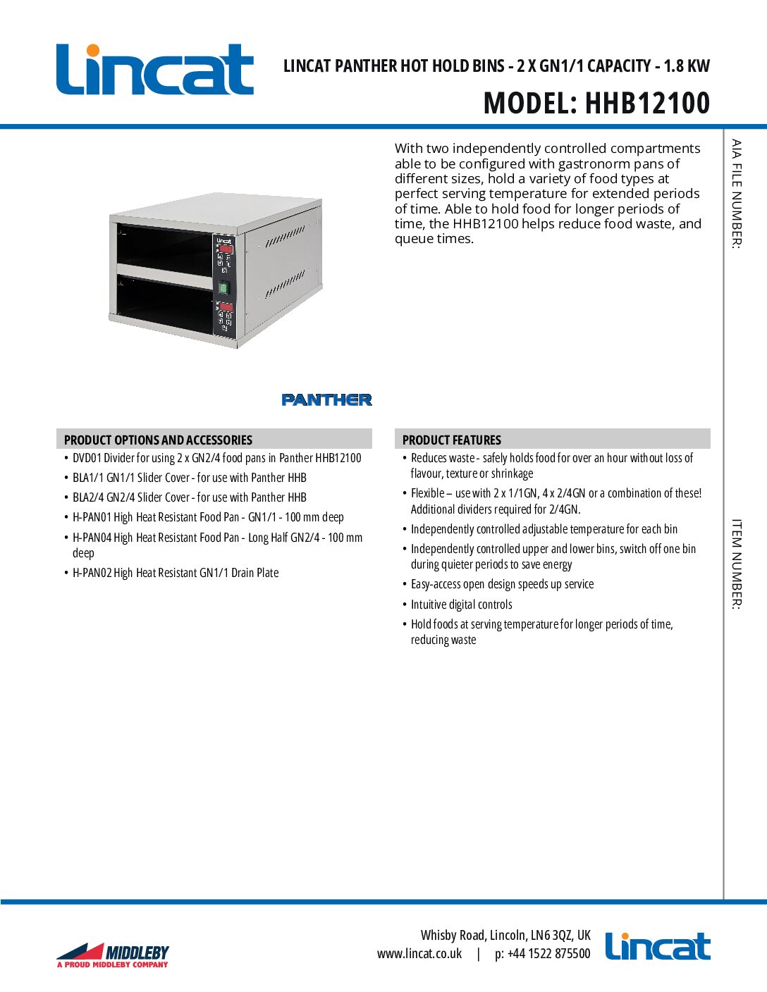 LINCAT HHB12100 Hot Hold Bins, 2 x GN1/1 – 1.8 kW