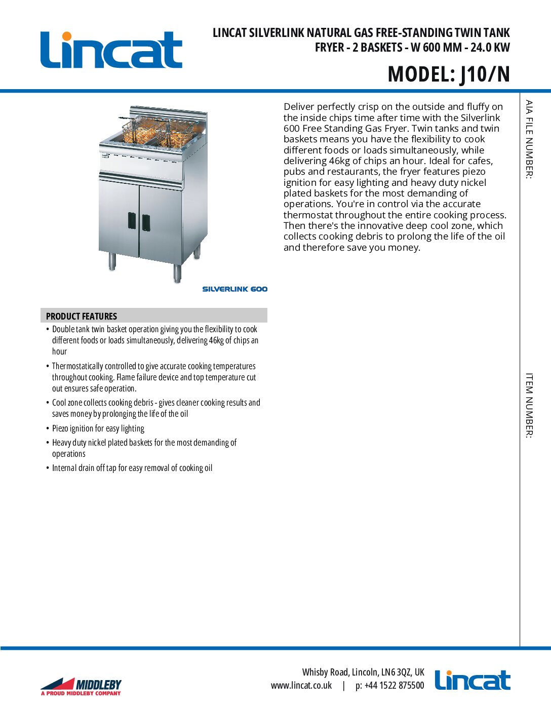 The Lincat J10/N Silverlink 600 is a powerful, free-standing twin tank natural gas fryer designed for high-output commercial kitchens. With 2 x 12 litre oil capacities and twin baskets, this robust unit can produce up to 46kg of chips per hour, making it ideal for fast-paced service in cafés, pubs, restaurants, and takeaways.