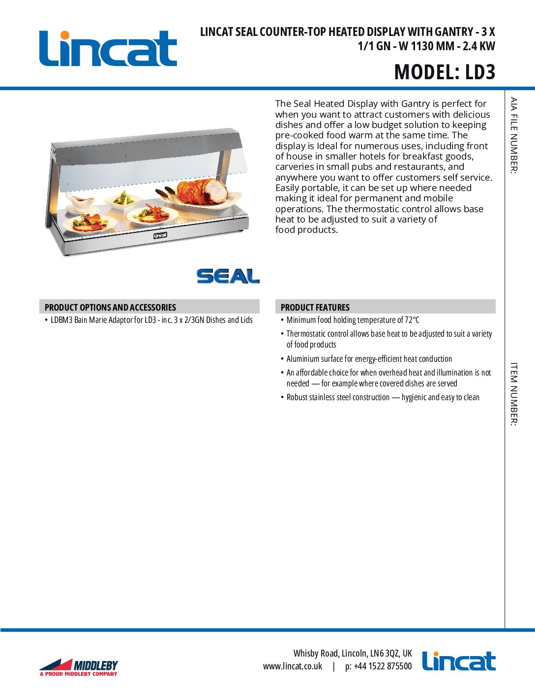 Lincat LD3 Heated Display with Gantry is the part of the Seal range.  The Lincat Seal range offer elegant heated, refrigerated and ambient display cases and are designed to maximise the appeal of your food. This easily portable heated display is ideal for both permanent and mobile operations.  It offers a low-cost solution for keeping pre-cooked food warm and hygienically displayed.