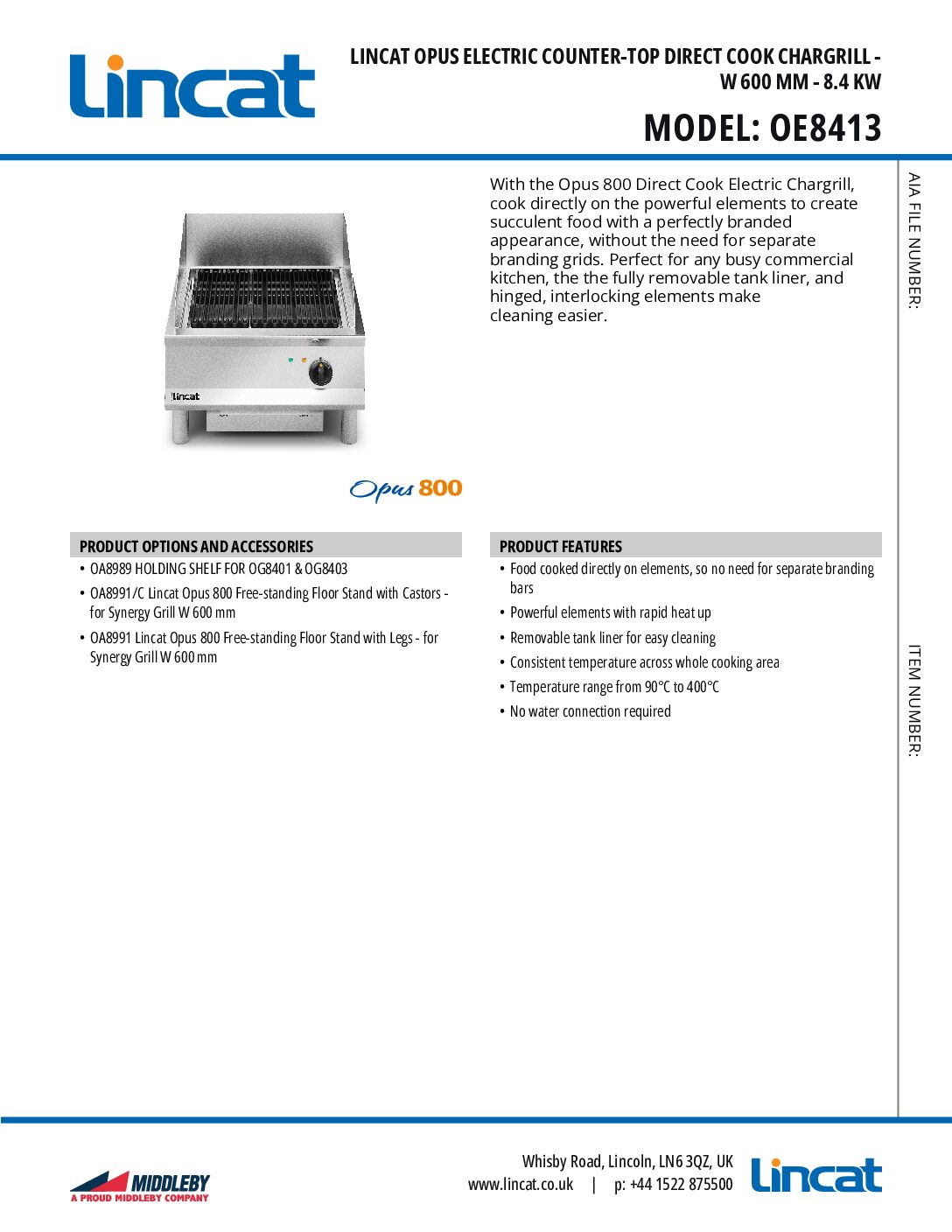 Lincat OE8413 Counter-top Electric Direct Cook Chargrill, 600mm (w) is part of the range of uniquely versatile Opus 800 Direct Cook Electric Chargrills, cook directly on the powerful elements to create succulent food with a perfectly branded appearance, without the need for separate branding grids. The fully removable tank liner, and hinged, interlocking elements make cleaning easier.