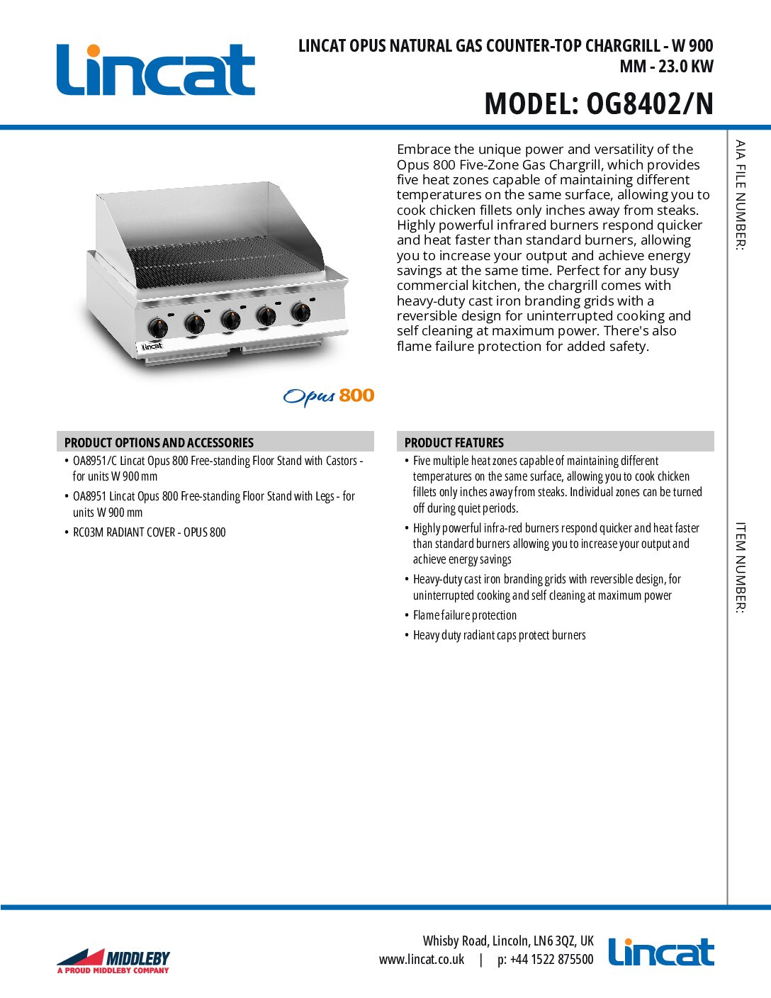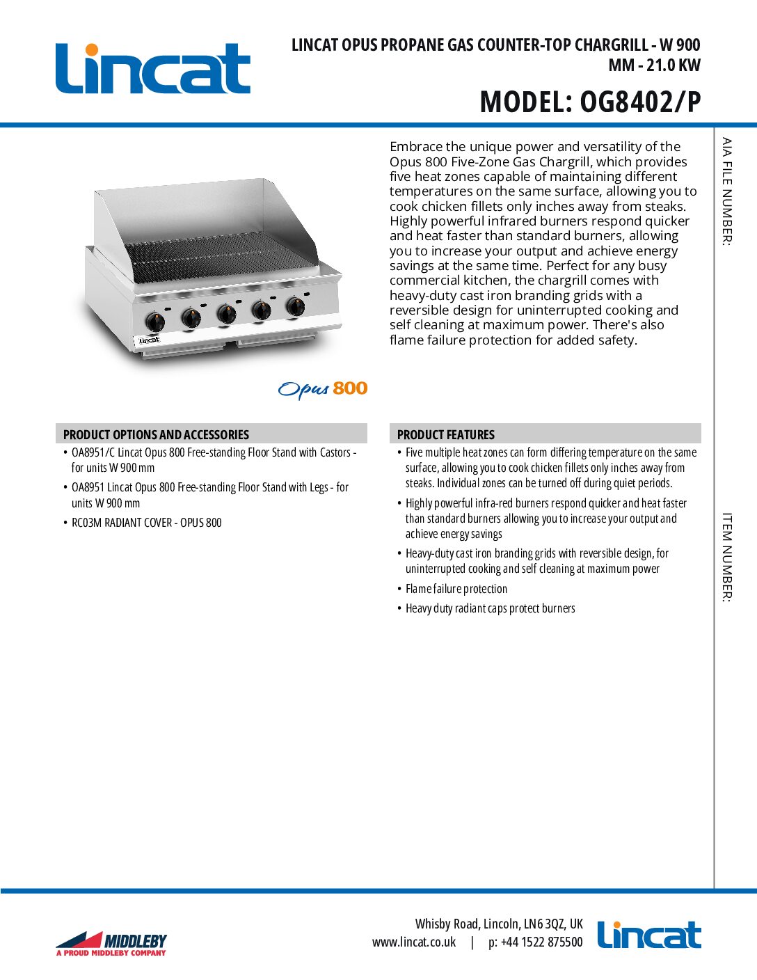 Lincat OG8402 Gas Counter-top Chargrill, 900mm wide