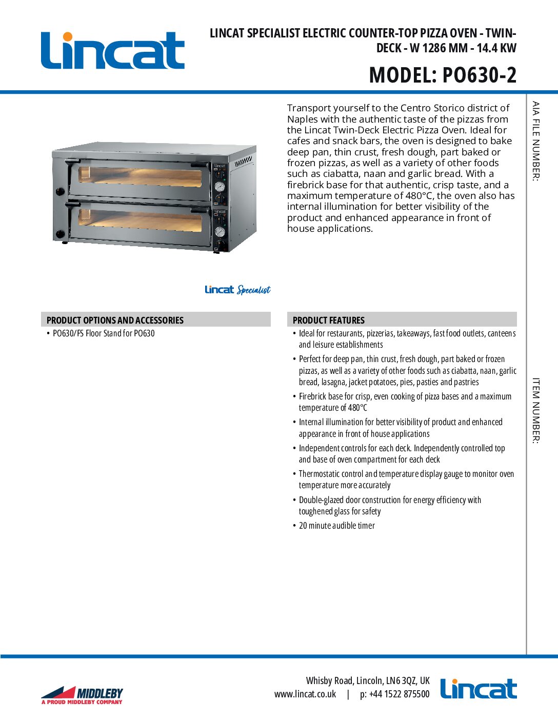 Lincat PO630-2 Electric Counter-top Pizza Oven, Twin-Deck is part of the range of Lincat pizza ovens ideal for restaurants, pizzerias, takeaways, cafés and fast food outlets. This oven is designed to bake deep pan, thin crust, fresh dough, part baked or frozen pizzas, as well as a variety of other foods such as ciabatta, naan and garlic bread.