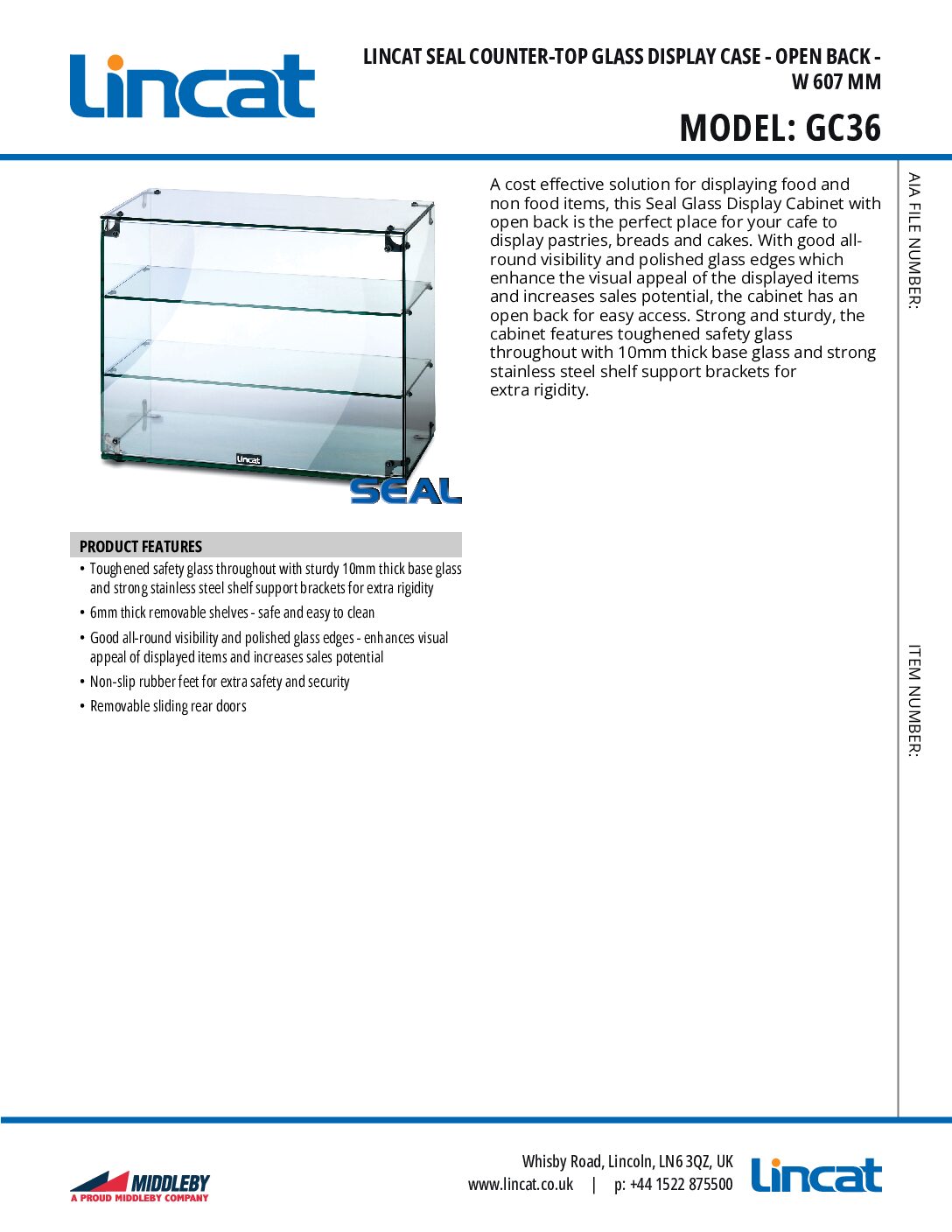 Lincat Seal GC36 Counter-top Glass Display Case – Open Back – W 607 mm