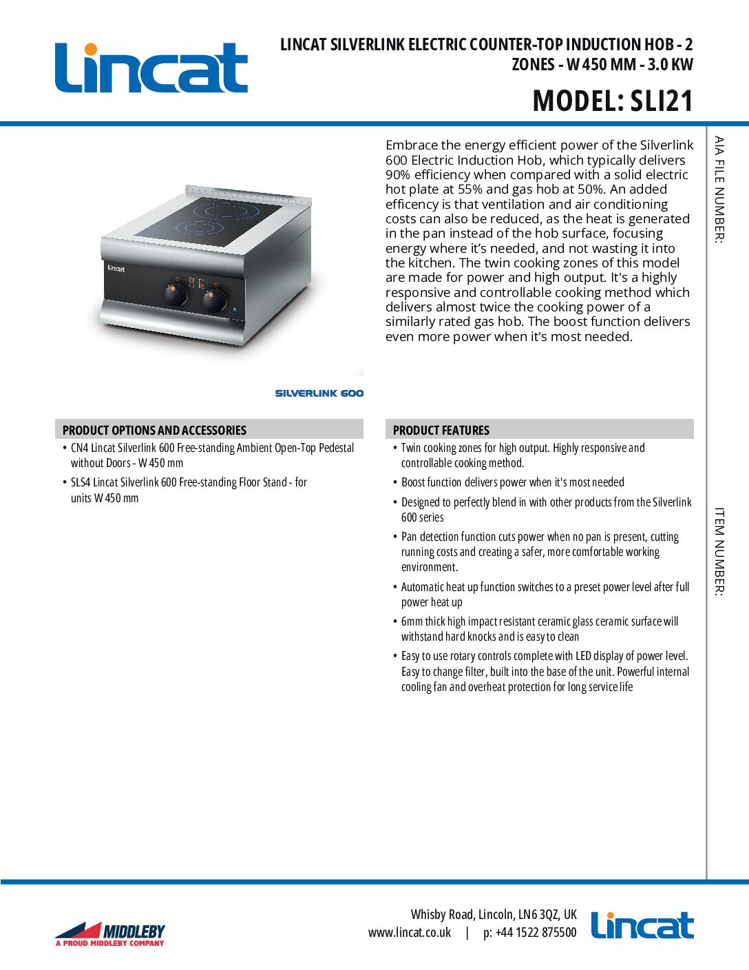 Providing all the power and control of their table-top counterparts, the Lincat SLI21 Two Zone Induction Hob is designed to perfectly suit the existing Silverlink 600 range of cooking equipment. The SLI21 is the definitive model for any commercial establishment where space is limited and energy-efficiency is paramount.