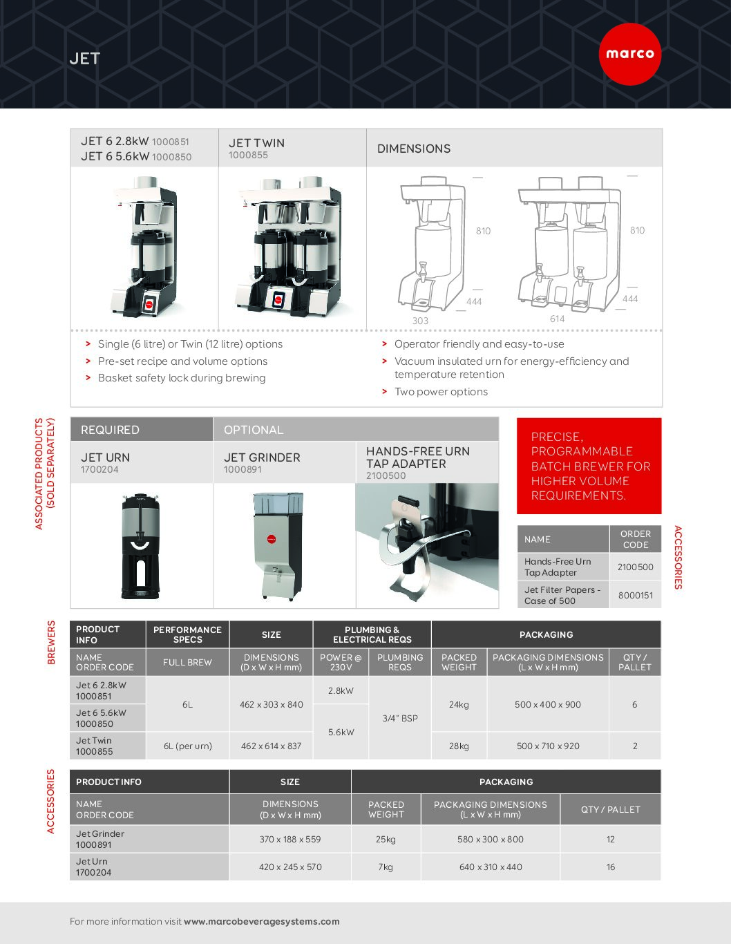 - Compatible with Marco Jet 6 and Jet Twin brewers