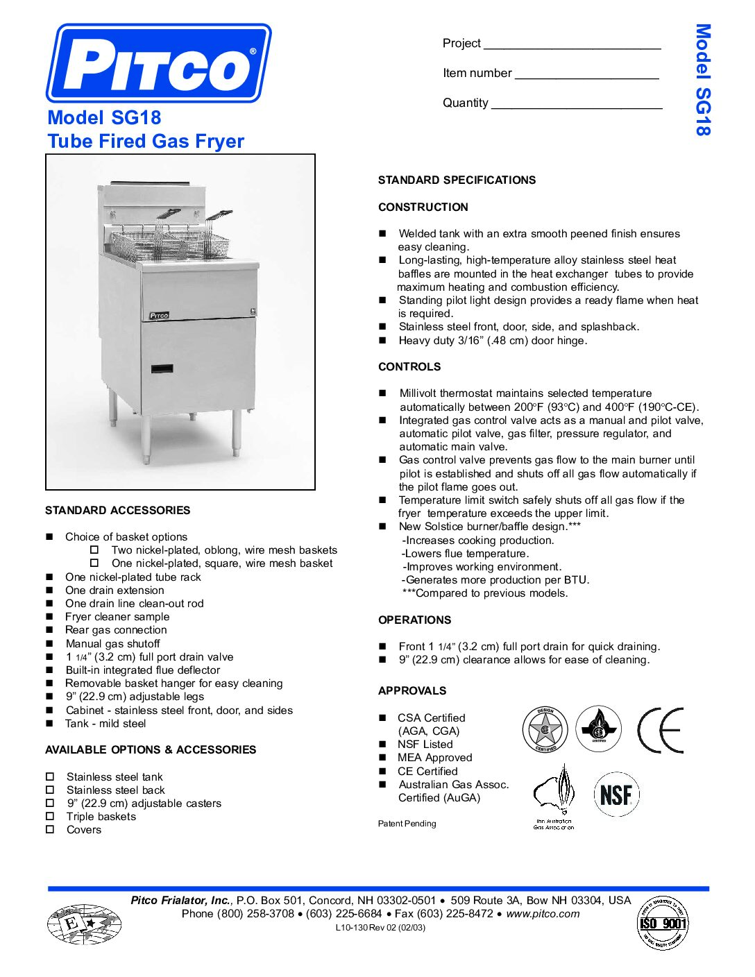 Supplied with a millivolt thermostat, thermo-safety pilot and high-limit safety cut-out, the SG18S delivers reliable, controlled performance throughout service. Its large frying area and high oil capacity make it well suited to takeaways, restaurants and operations where throughput matters.