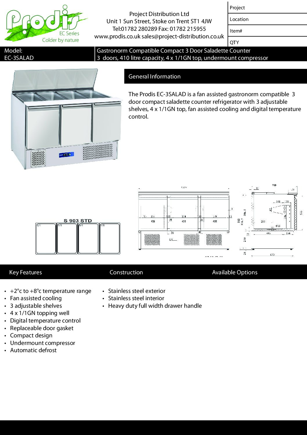 If you have any questions about the Prodis EC-3SALAD or need help choosing the right prep counter for your kitchen, call us on 01379 641223 — we’re here to help.