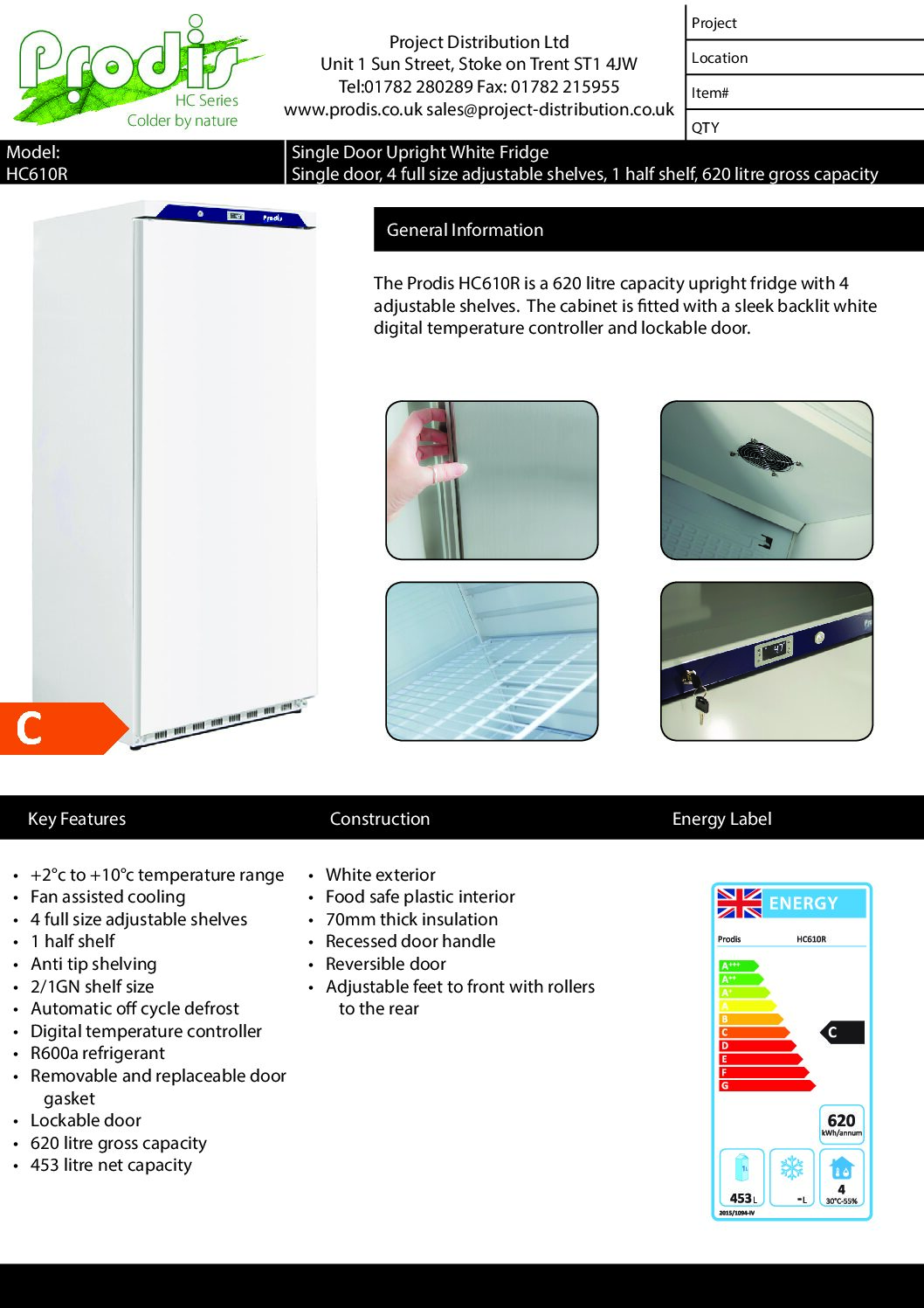Prodis HC610R Upright 620 Litre White Storage Fridge