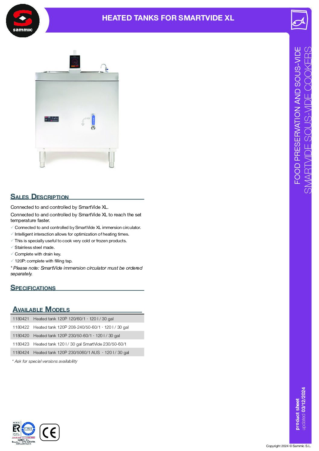 1180070 Heated tank 28 l / 7.4 gal SmartVide · 750W · 230/50-60/1