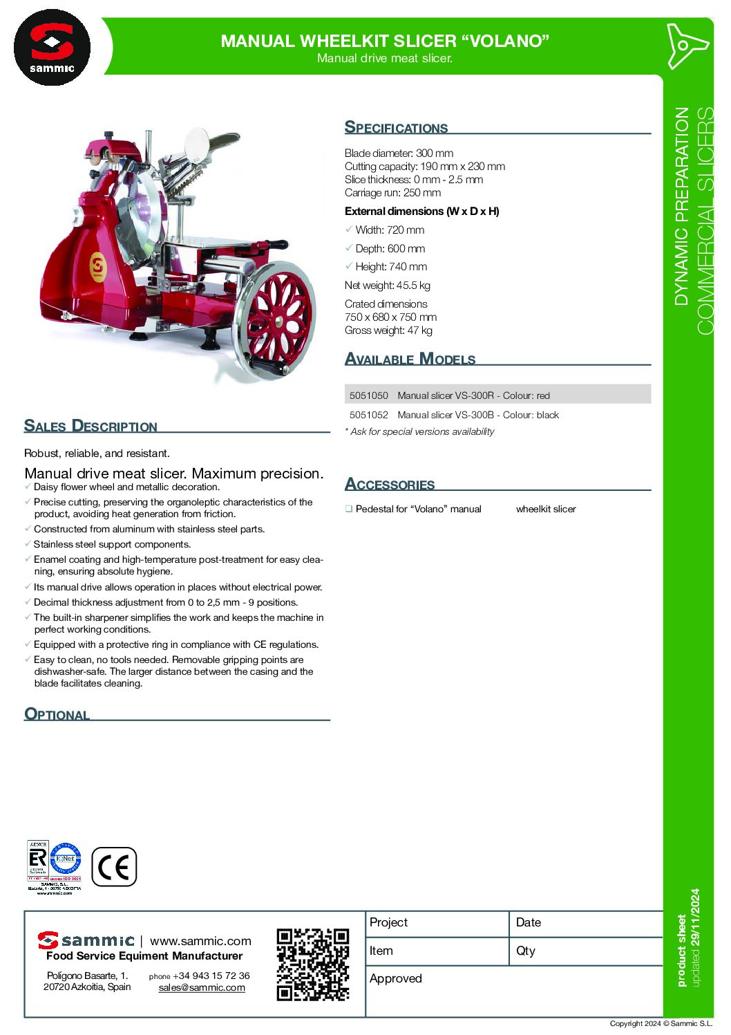 Sammic Pedestal for Volano Manual Wheelkit Slicer – part of the quality range of accessories from Sammic. The VS-300 Volano slicer is available in either a classic red or sleek black finish; please select your preferred model at checkout.
