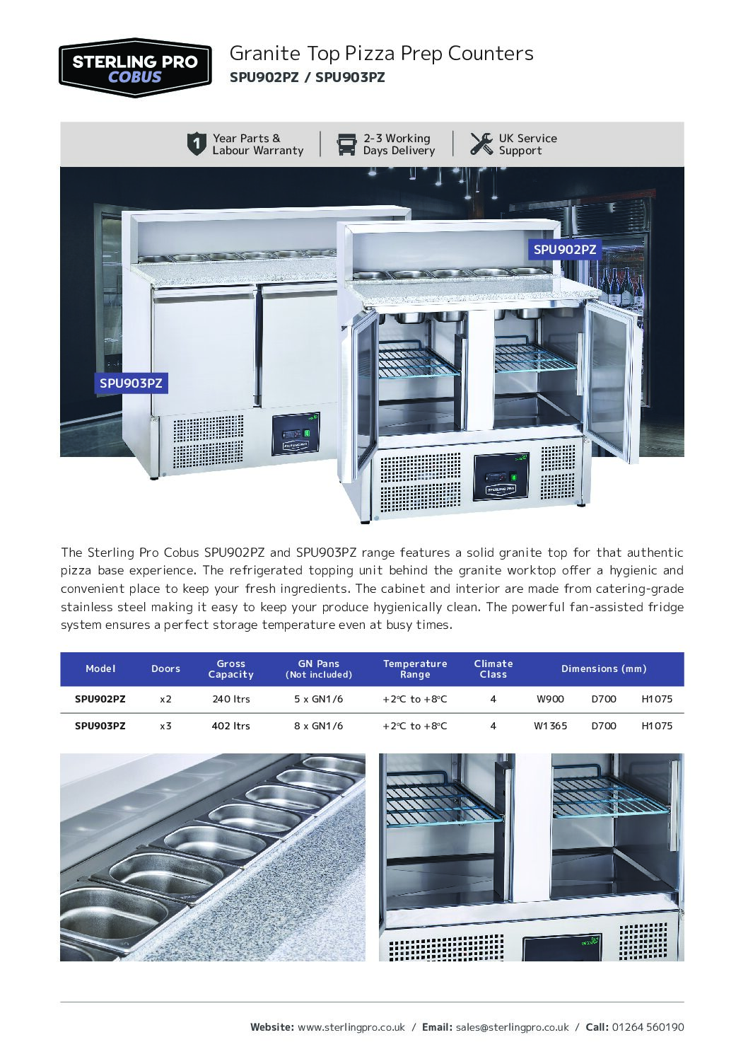 SPU902PZ – 2 Door Pizza Counter Granite Top, 5 x GN1/6, 240 Litres