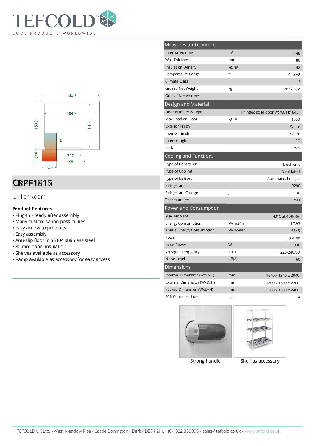 CRPF1815: 1800mm (w) x 1500mm (d) x 2200mm (h)