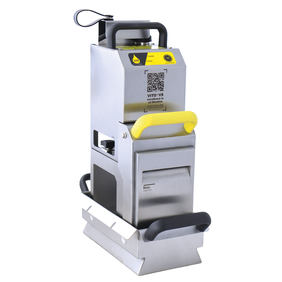 The filtered oil is immediately ready for reuse, making your kitchen operations even more efficient. The VITO VS impresses with its compact and modern design, ensuring easy handling. A QR code on the unit’s control panel provides direct access to a dedicated VS webpage with all essential information at a glance.