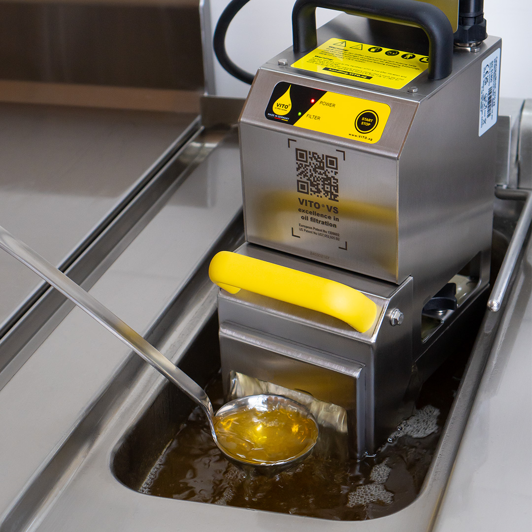 In just 4.5 minutes, the VITO VS filters out all microparticles down to 5 μm – completely unattended! This reduces the cleaning effort around your fryer, giving you more time to focus on your core business.