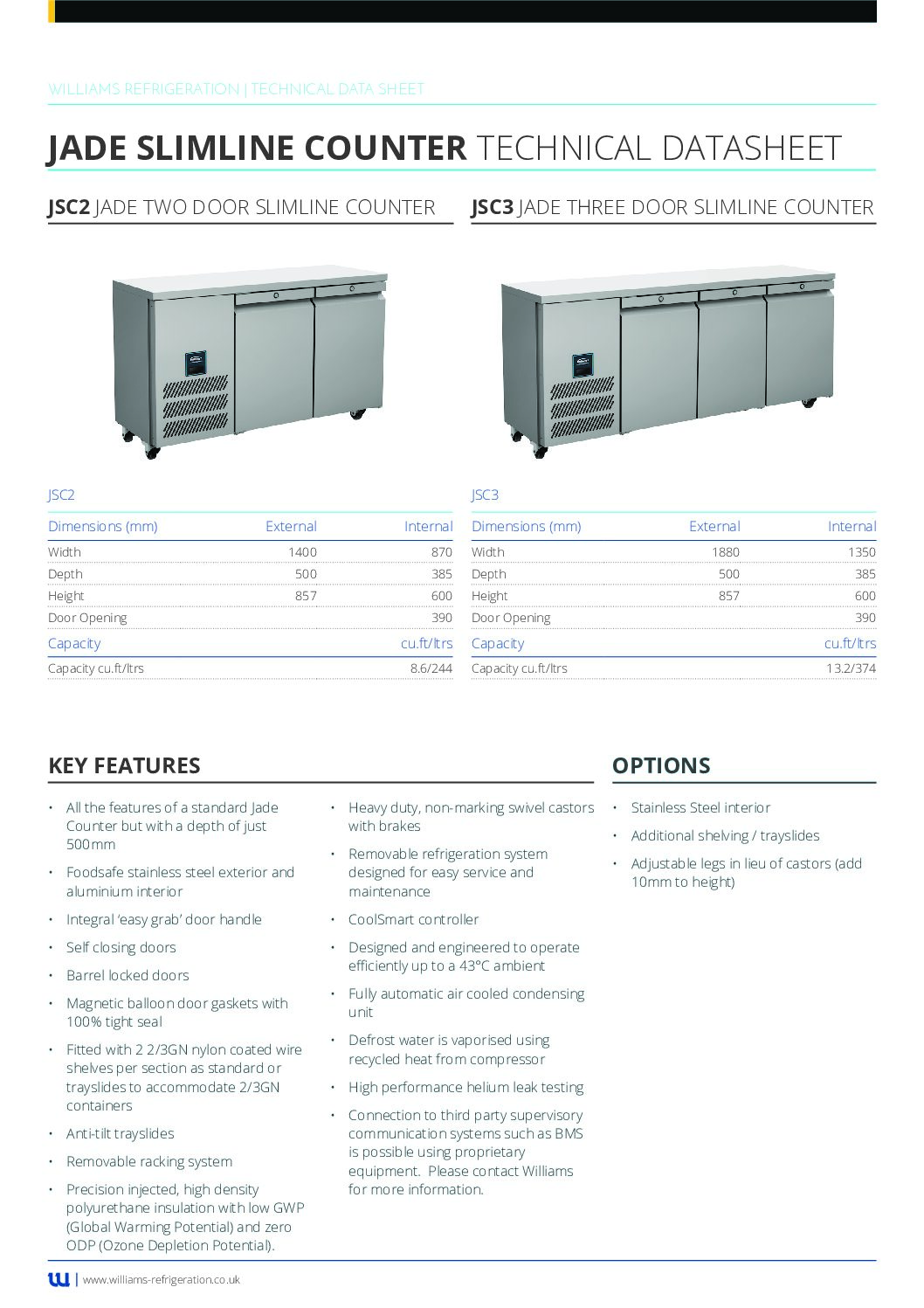 The Williams LJSC3-SA is a high-performance three-door slimline counter freezer, engineered for durability, energy efficiency, and reliable operation in busy commercial kitchens. Designed for foodservice environments where space is at a premium, it offers ample frozen storage without compromising on footprint.