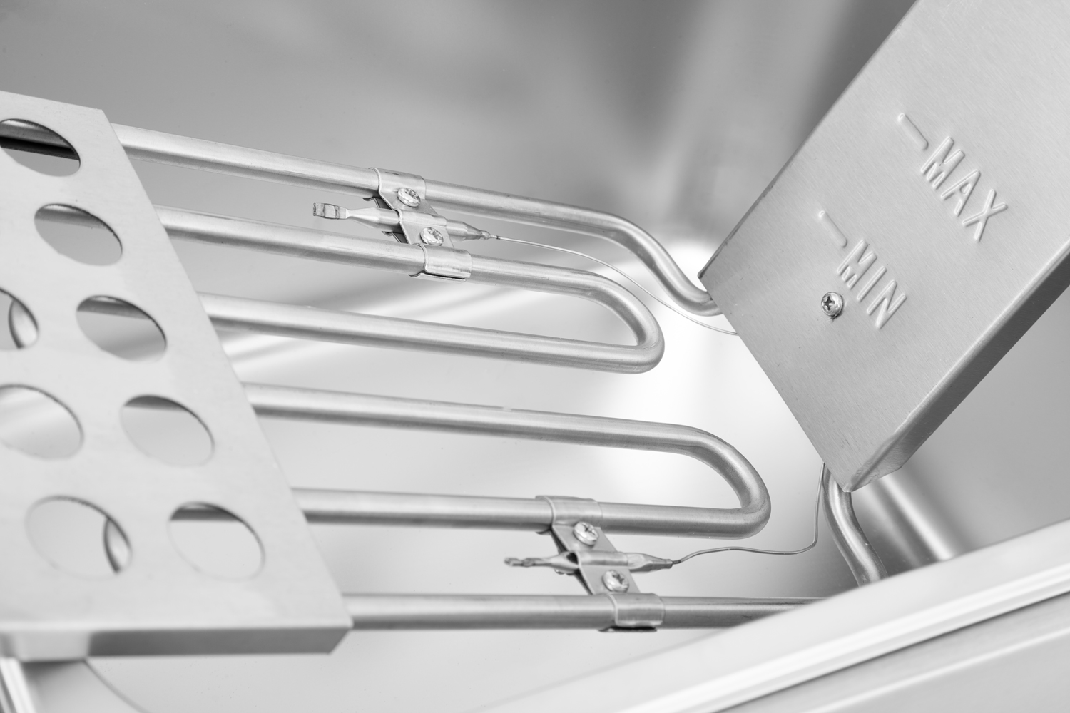 - Stainless steel construction with removable oil tank