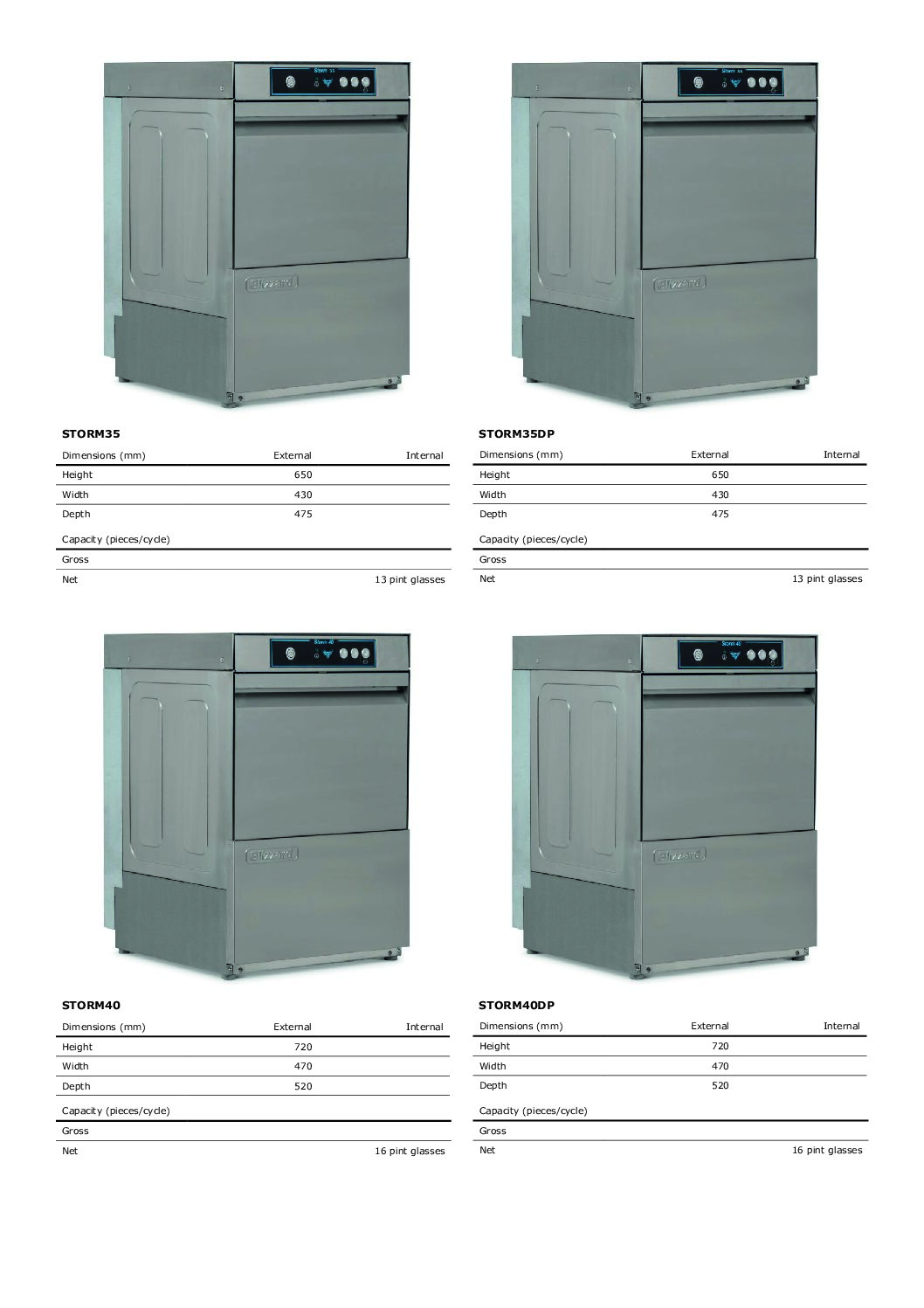 - 16 pint capacity per cycle (based on 90mm diameter pint glass)