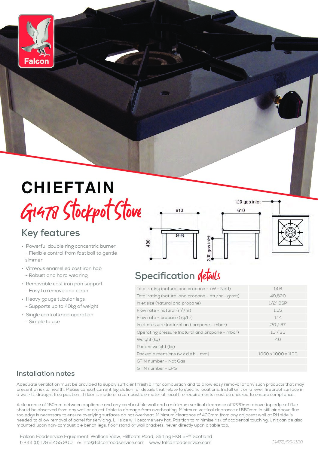 The Falcon Chieftain G1478 Gas Stock Pot Hob is engineered for serious capacity and heavy-duty output, making it ideal for preparing bulk stocks, soups, sauces and reductions in demanding back-of-house environments. Its robust cast iron hob and removable pan support provide exceptional stability for large pots, while the clean, minimal control layout ensures reliable day-to-day performance.