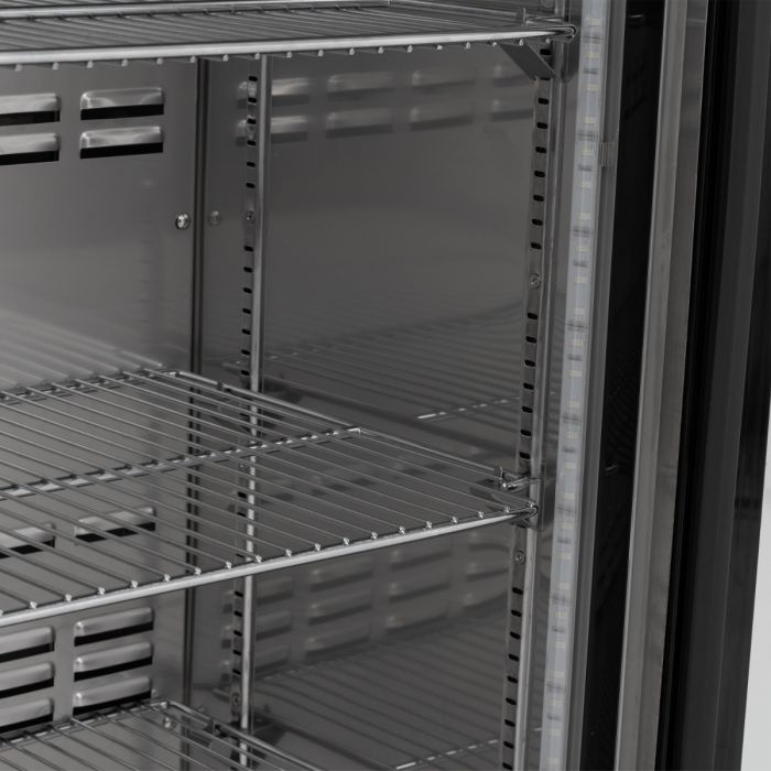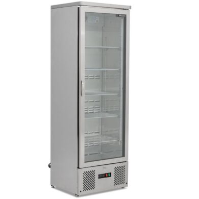 Create a striking drinks display and maximise your chilled storage with this sleek upright bottle cooler. With its stainless steel body, mirrored interior, and double-glazed glass door, this unit is designed to turn heads — even in dimly lit venues thanks to its side-mounted LED lighting.