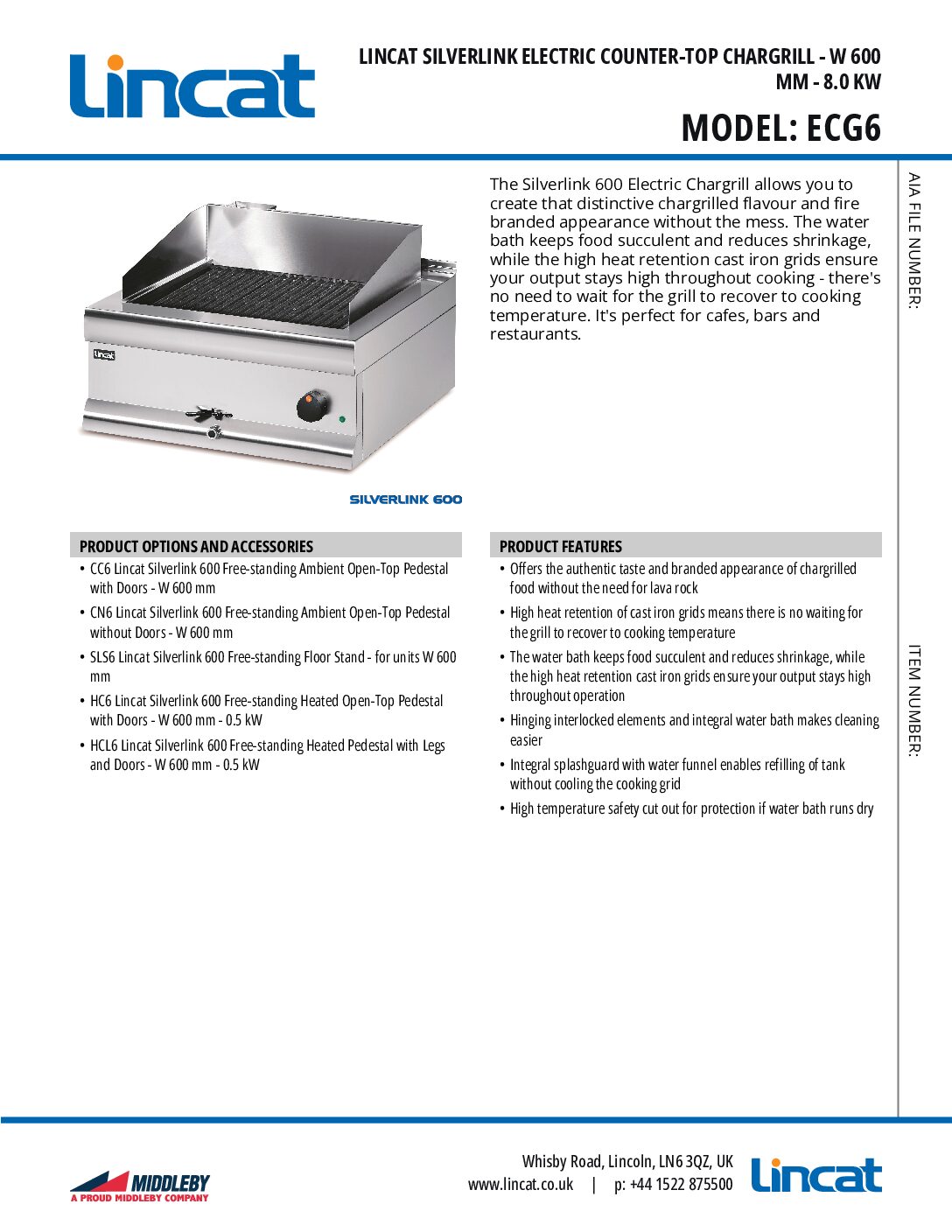 Lincat ECG6 Silverlink 600mm Electric Chargrill has high heat retention of cast iron grids means there is no waiting for the grill to recover to cooking temperature.