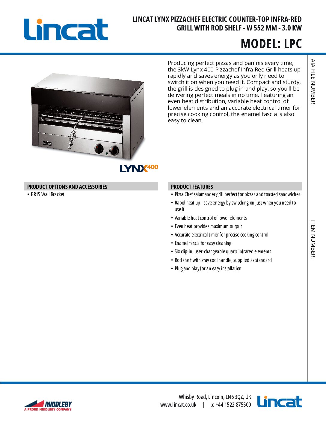 Lincat LPC Pizzachef Electric Counter-top Infra-Red Grill