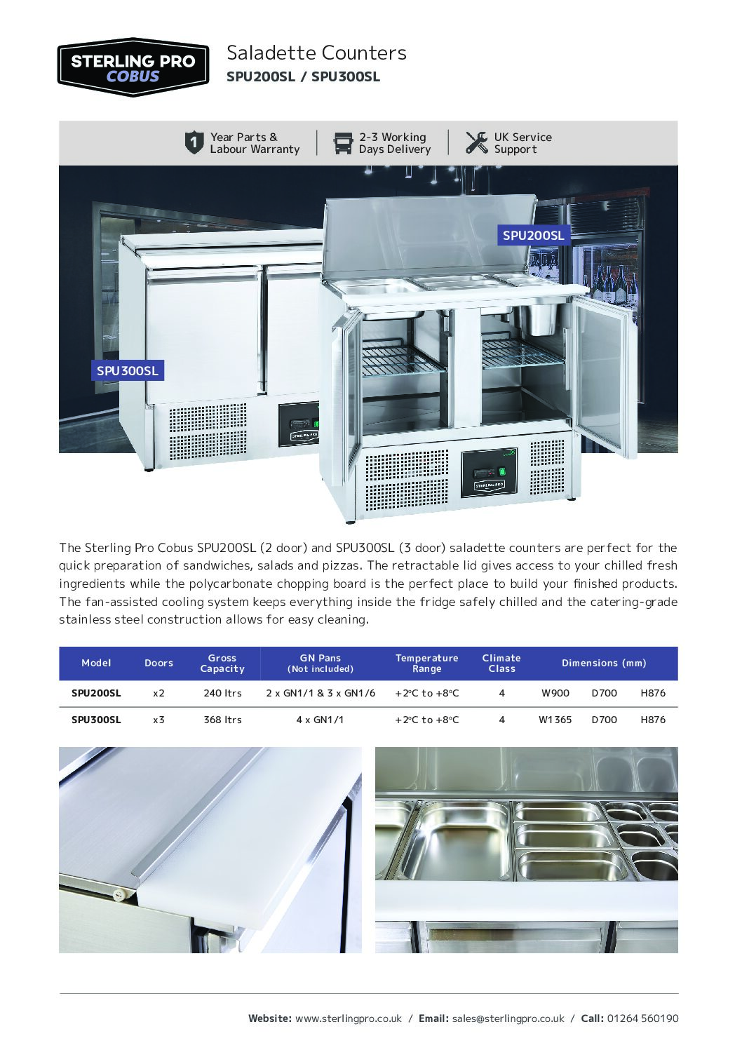 Sterling Pro SPU300SL 3 Door Saladette Hinged Lid + Chop Board, 368 Litres is part of the latest range of refrigerated pizza counters and saladettes from Sterling Pro. Where quality and value meet, Sterling Pro offers excellent quality components combined with European build quality at a fantastic price. With all the features you would expect from a premium brand quality product, Sterling Pro offers the discerning caterer the best of both, while rapidly becoming the refrigeration engineer’s choice.